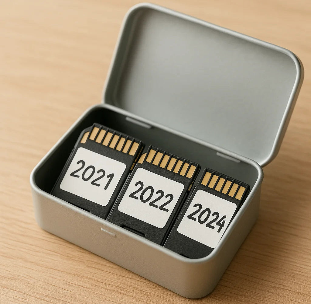Parce qu’il est important de pouvoir revivre ses souvenirs facilement, chaque année trouve sa place sur une carte SD dédiée.
